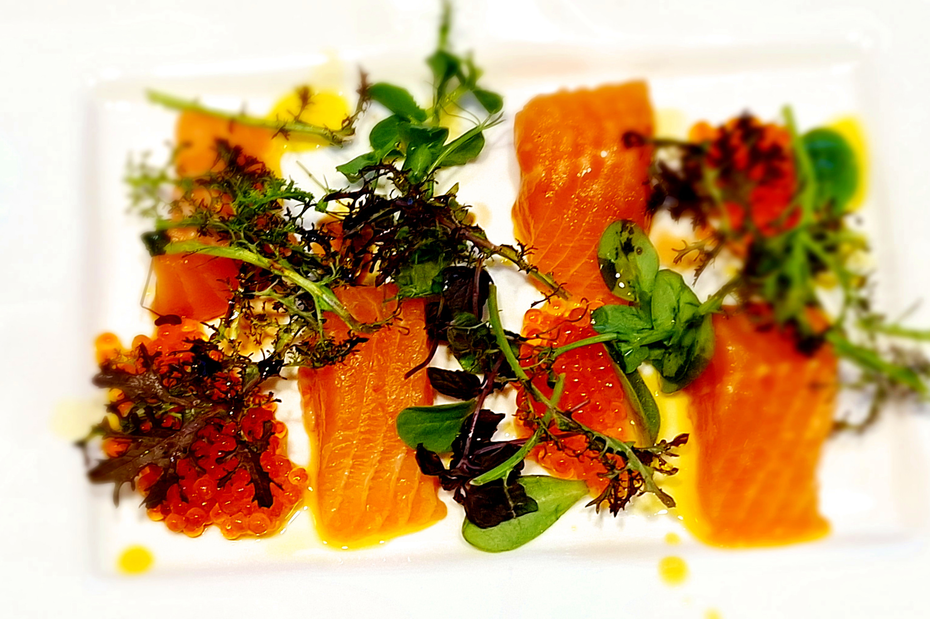 Giersch, Radieschen, geröstete Brotwürfel , ParmesanspäneCappuccino von der GarneleGarnelen, Rosmarin, Weisswein, Noilly Prat, Pastis.Kabeljau gebbraten, Sauce von Stangensellerie, Spitzpaprika, Pasta di Semola4 x Käse