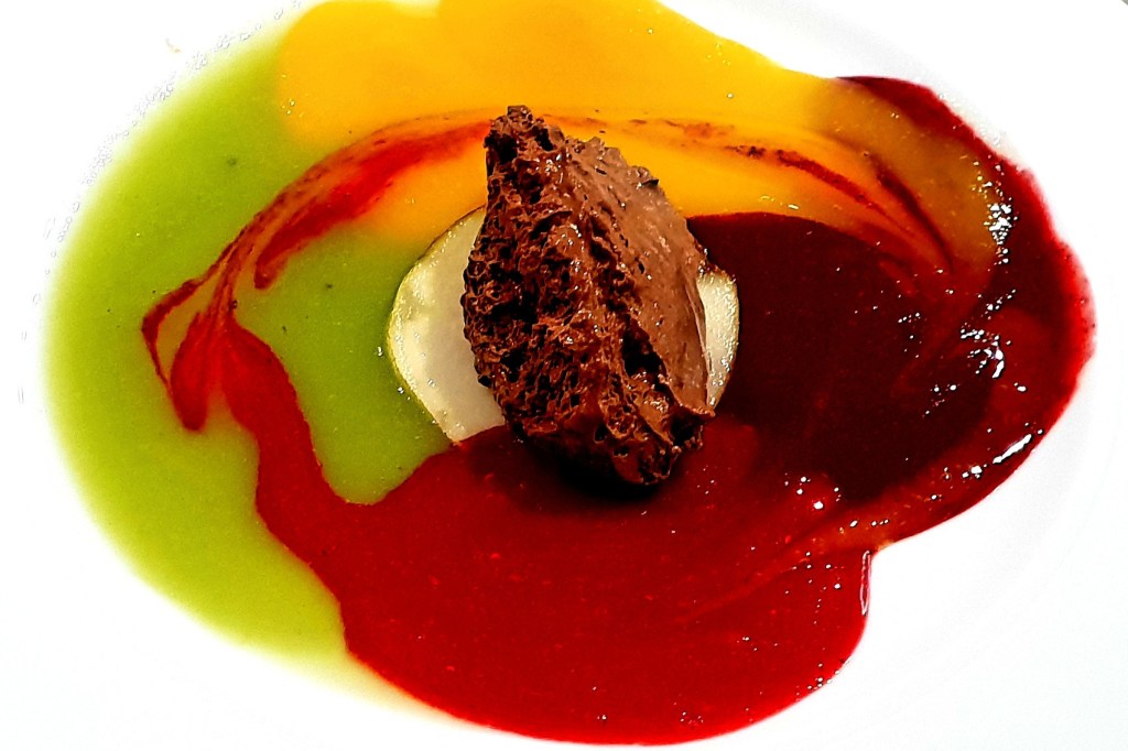 Lieblingsdessert unserer Tochter Sabrina. Dialog von Früchten nach H-P. Wodarz und Mousse de Chocolat
