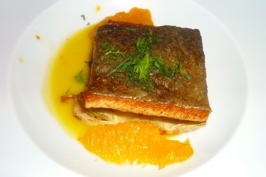 Sellerieknolle schälen und ca. 150 gr. würfeln. Diese mit kaltem Wasser aufgießen, zum Kochen bringen und ca. 1 – 2 Std. ziehen lassen. Vorher wird noch eine Paste hergestellt. Dazu werden 200 gr. Liebstöckelblätter und 40 gr. Salz gemörsert. Die Paste, je nach Geschmack, mit dem Selleriesud mischen und zusammen mit dem Kabeljau in eine Form geben. Der Rest der Paste hält sich Dank des Salzes im Schraubglas. Den Fisch bei 70 Grad ca. 8 Minuten im Dampfgarer garen. Den Fisch warm halten, den Sud auffangen und mit Butter auf Mixen. (beim nächsten Versuch werde ich den Sud mit Olivenöl mixen) Gewürzt wird mit Pfeffer und einen Hauch Curry. Salz ist ja bereits in der Paste.