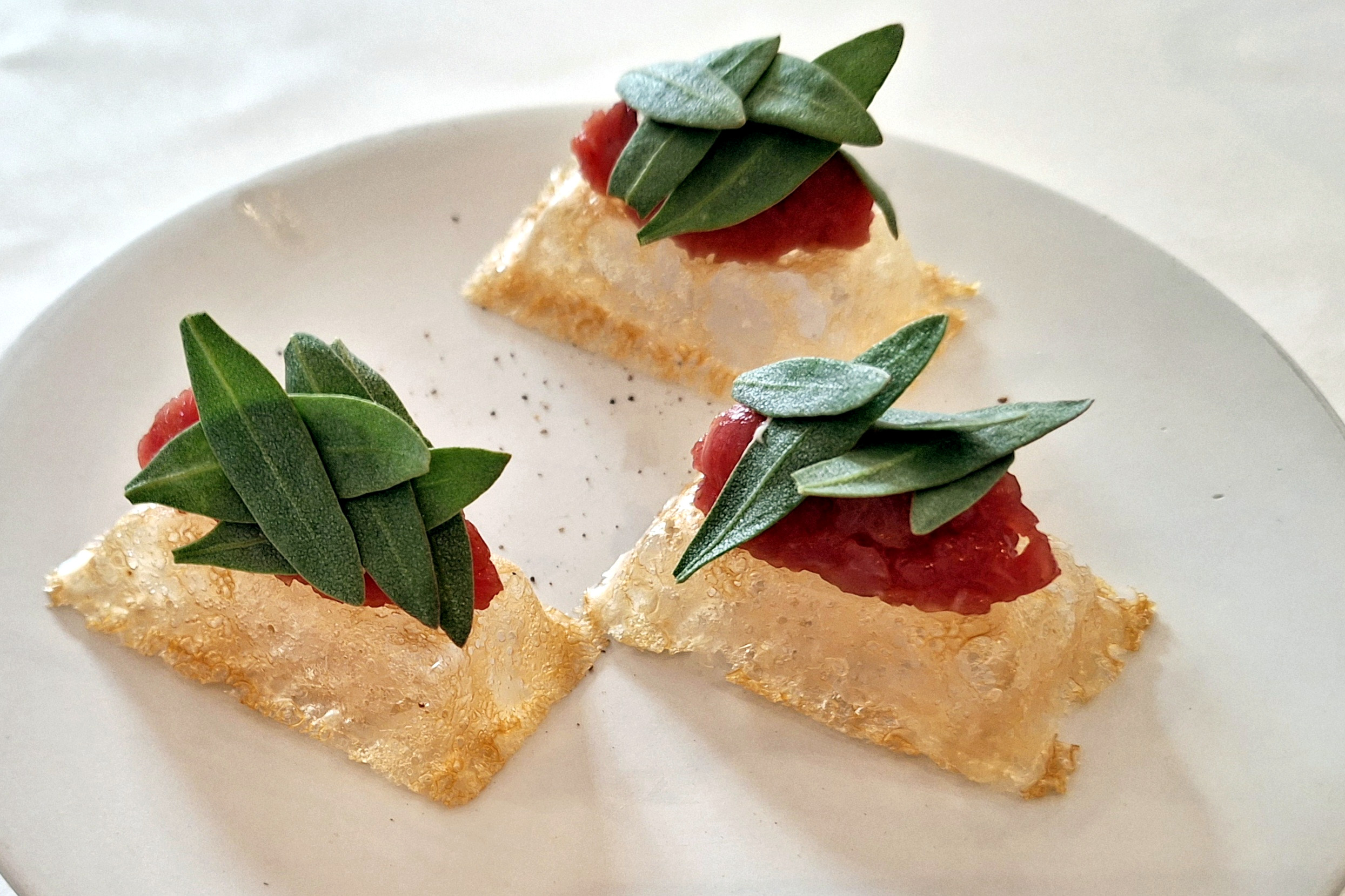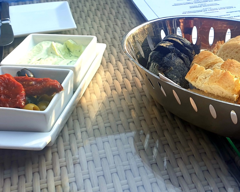 Zum frischen Brot mit Dips tranken wir Champagner und bzw. „Hugo“. Bei den Vorspeisen probierten wir uns quer durch die Karte, doch beim Hauptgang war die Ente unser Favorit. Nach etwa 20 Minuten kamen die Vorspeisen – das Warten lohnte sich. Die kreative Präsentation und die Frische der Gerichte begeisterten uns.
